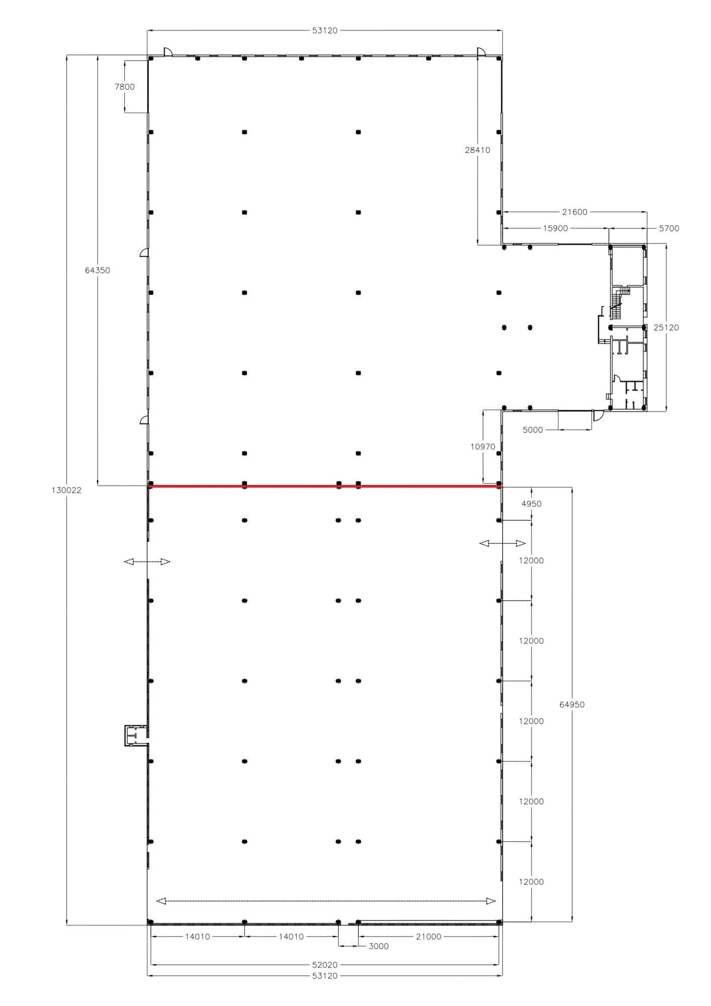 Sono presenti degli uffici di ca 250 mq ed un 100 mq si spogliatoi.